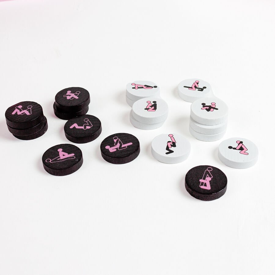 • 42 pièces (21 pièces blanches et 21 pièces noires) chacune avec une position différente du Kama Sutra.